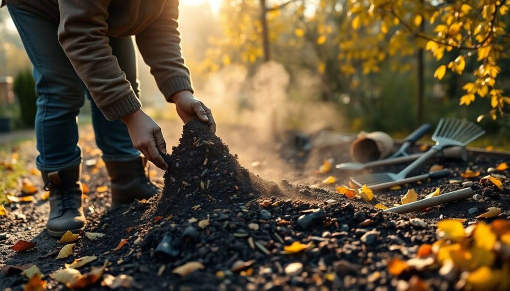 Le compost correctement décomposé est un élément fondamental dans la préparation hivernale. Les jardiniers professionnels l’appliquent systématiquement en octobre, à raison de 3 à 5 litres par mètre carré, en fonction de la qualité du sol existant.