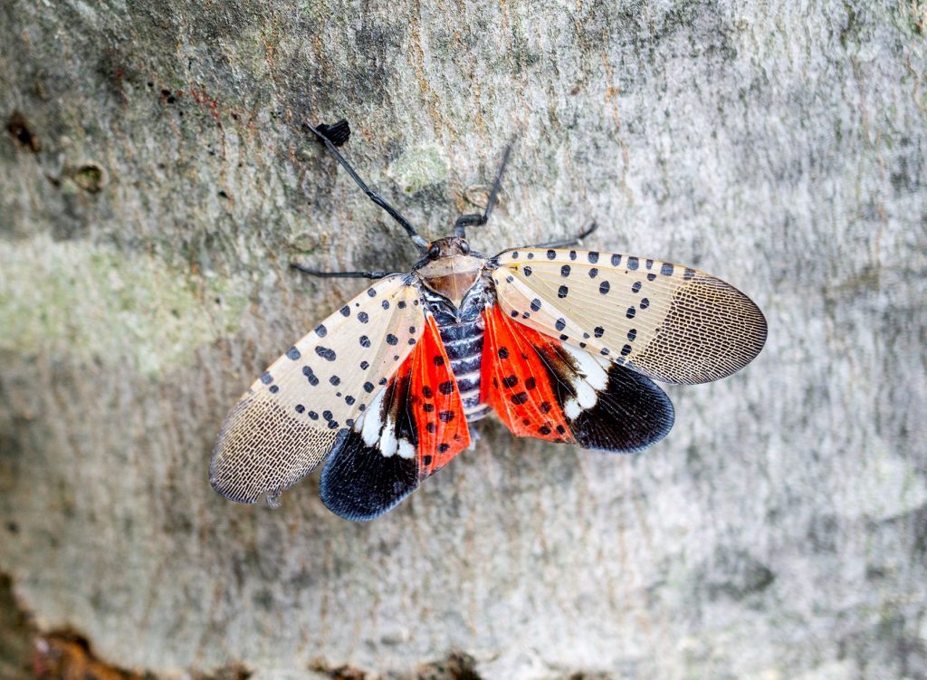 En tant qu’insectes, les lanternes tachetées sont frappantes. Cet insecte à taches noires est gris pâle avec des ailes teintées de cramoisi aux lignes géométriques. Mais aussi jolis que soient ces insectes ressemblant à des mites, c’est une mauvaise nouvelle si vous en trouvez un. La mouche de la lanterne est un nouveau ravageur que l’on trouve actuellement dans 14 États du nord-est. Elles dévorent les vignobles, dévorent certains arbres et retardent les expéditions de tout, du bois au lait.