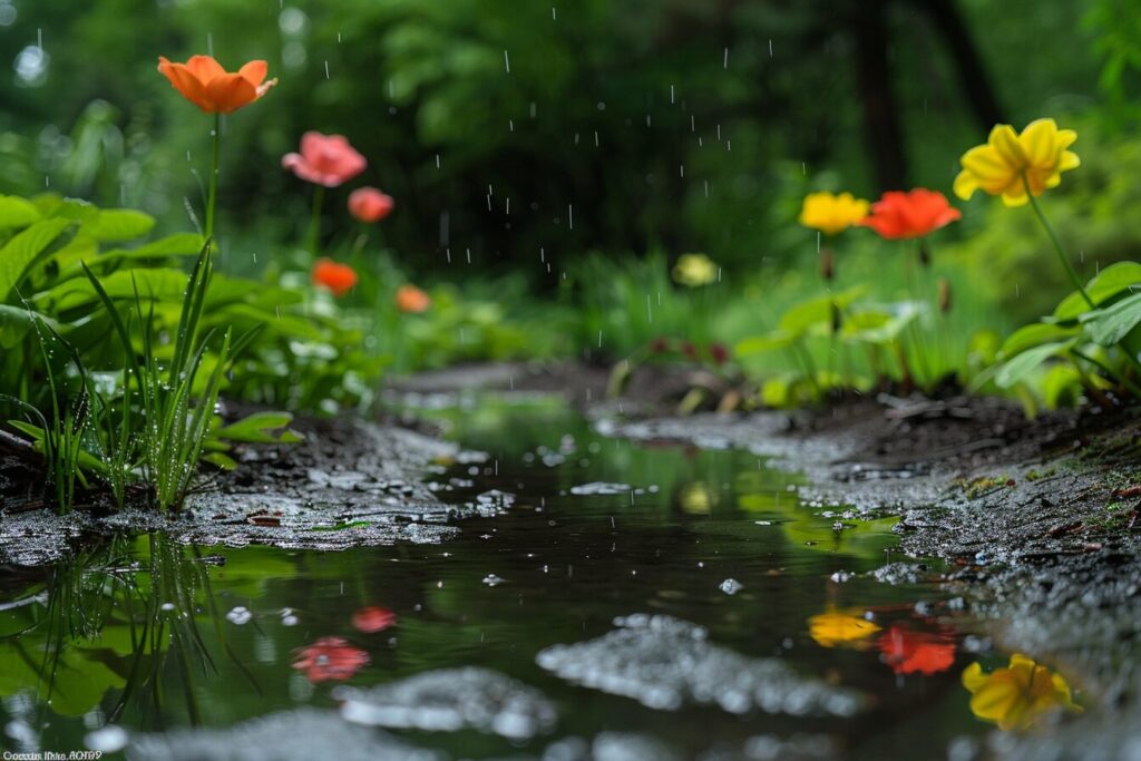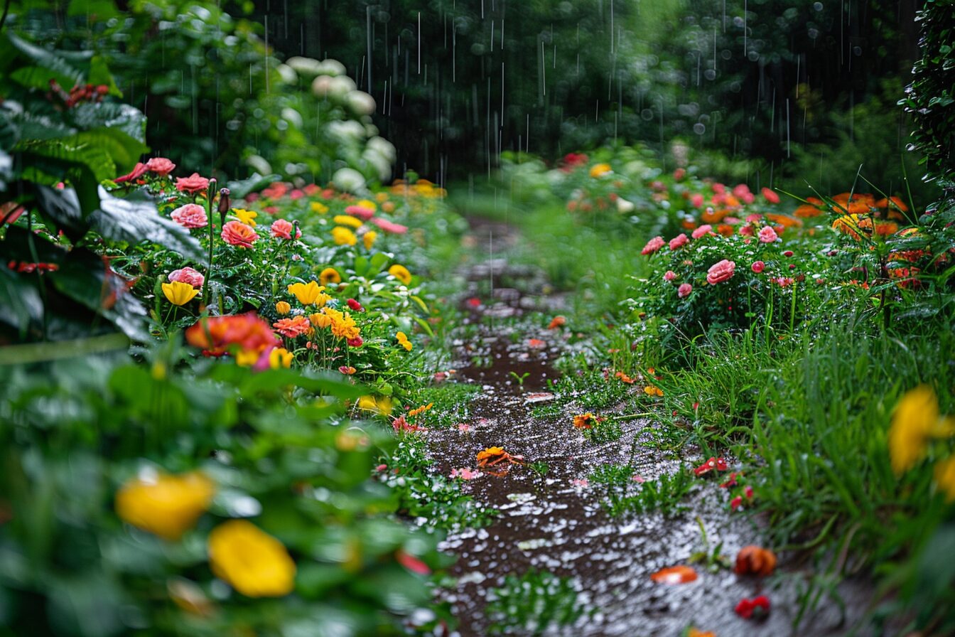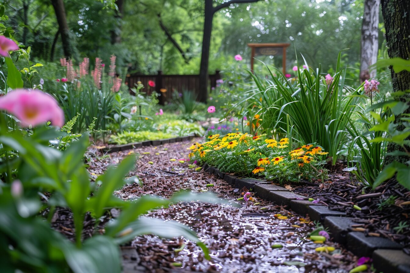 Des plantes comme l’iris d’eau, le lotus ou le papyrus s’épanouissent dans un environnement gorgé d’eau. Ces espèces, parmi d’autres, sont capables de pousser dans des conditions fortement humides où d’autres plantes ne pourraient pas survivre. En plantant stratégiquement ces variétés dans les zones où l’eau a tendance à s’accumuler, il est possible de transformer un problème apparent en une jolie spécificité de votre jardin.