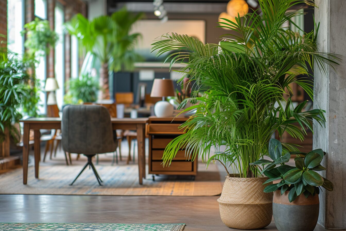 L’une des façons les plus simples et efficaces d’aménager un espace de travail vert est d’intégrer des plantes. Les plantes apportent de nombreux bienfaits, notamment en améliorant la qualité de l’air, en réduisant le stress et en favorisant la concentration. Choisissez des plantes d’intérieur adaptées à votre environnement de travail, telles que des plantes dépolluantes comme le lierre ou le palmier d’Areca.