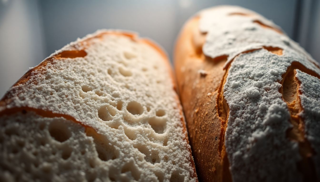 Naturellement, le pain contient entre 35% et 40% d’eau. Pendant la congélation, cette eau se transforme en cristaux de glace, affectant temporairement la structure interne de la mie. Les protéines de gluten et l’amidon subissent des modifications, mais celles-ci sont principalement réversibles lors de la décongélation.