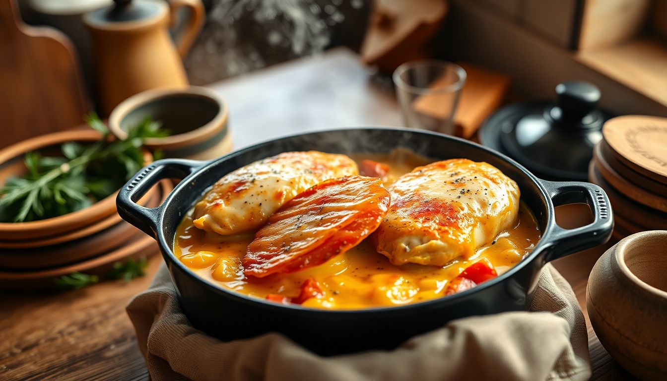 En somme, le poulet mijoté crémeux au parmesan et jambon de Parme transformera vos week-ends en un véritable festin familial. Bien que sa préparation demande un certain engagement, elle reste accessible, et le résultat final récompensera largement vos efforts. Ce plat combine tradition et sophistication, idéal pour créer de précieux souvenirs autour de la table.