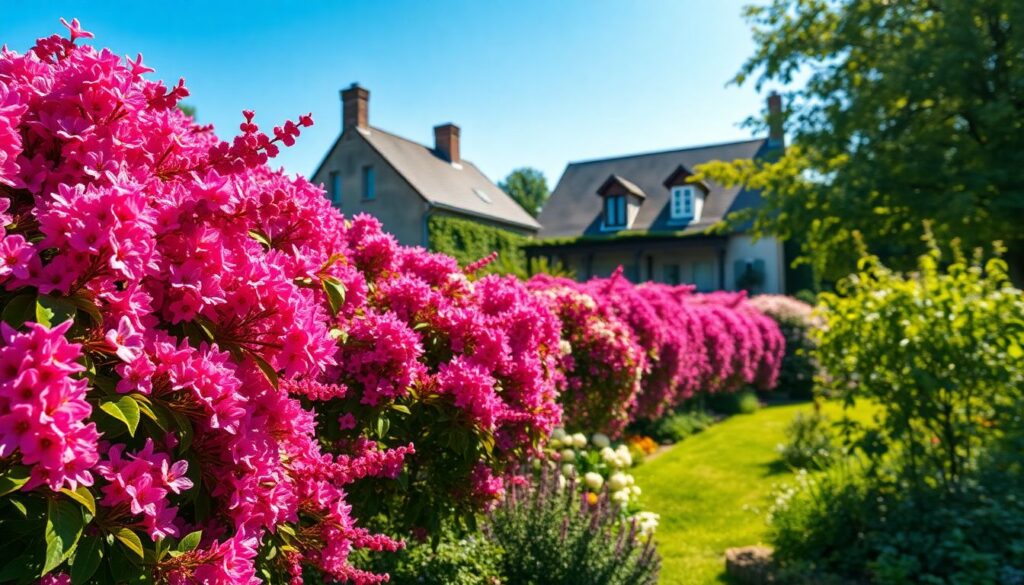Pour ceux qui préfèrent des teintes plus douces, ‘Sioux’ offre une floraison rose pâle, apportant une touche romantique. Cette variété compacte, mesurant entre 2,5 et 3 mètres, est parfaite pour des espaces réduits.