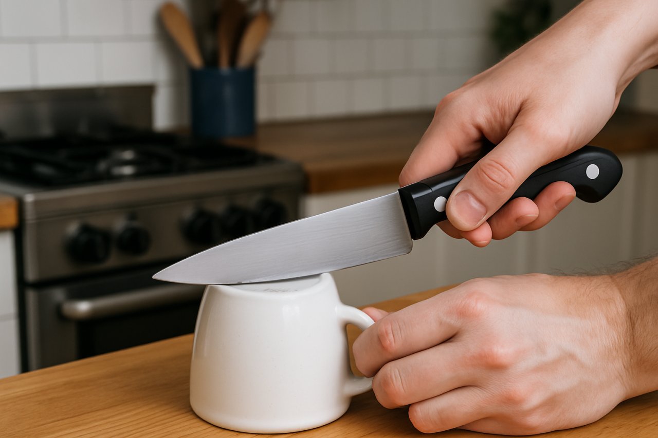 Le succès de cette méthode repose sur l’abrasion contrôlée. Contrairement aux pierres à aiguiser classiques qui nécessitent un trempage et une technique précise, le fond d’assiette est toujours prêt à l’emploi. Sa texture granuleuse permet de réaligner le fil du couteau tout en éliminant les micro-ébréchures accumulées avec l’usage.