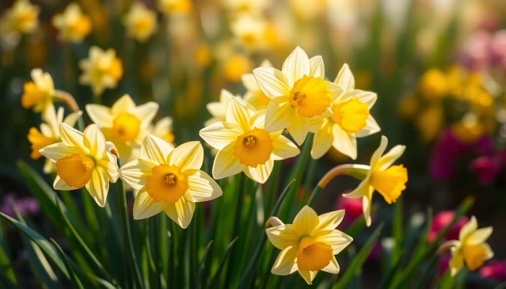 Parmi les variétés horticoles robustes, on compte ‘February Gold’, qui fleurit dès février, ‘Tête-à-tête’, parfait pour des rocailles, et ‘Ice Follies’, dont les grandes fleurs blanches illuminent les massifs pendant plusieurs semaines. Ces cultivars allient beauté ornementale et résistance face aux conditions exigeantes.