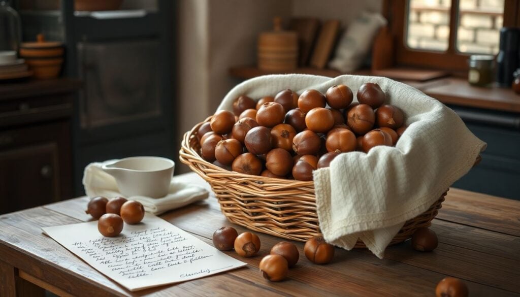 - Sélection initiale : Choisissez uniquement des châtaignes en parfait état, sans fissures ni trous. Jetez celles qui flottent lors du premier essai dans l’eau, car elles sont déjà détériorées.