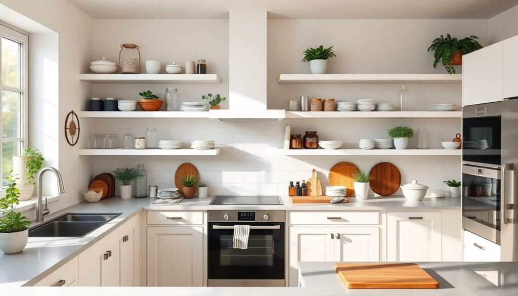 Le style campagne chic se prête fabuleusement à ce type de transformation. L’utilisation de bocaux en verre remplis de légumineuses, de paniers en osier, et de vaisselle en céramique artisanale contribue à instaurer une ambiance chaleureuse et authentique. Cette démarche valorise l’aspect pratique tout en conservant le charme rustique.