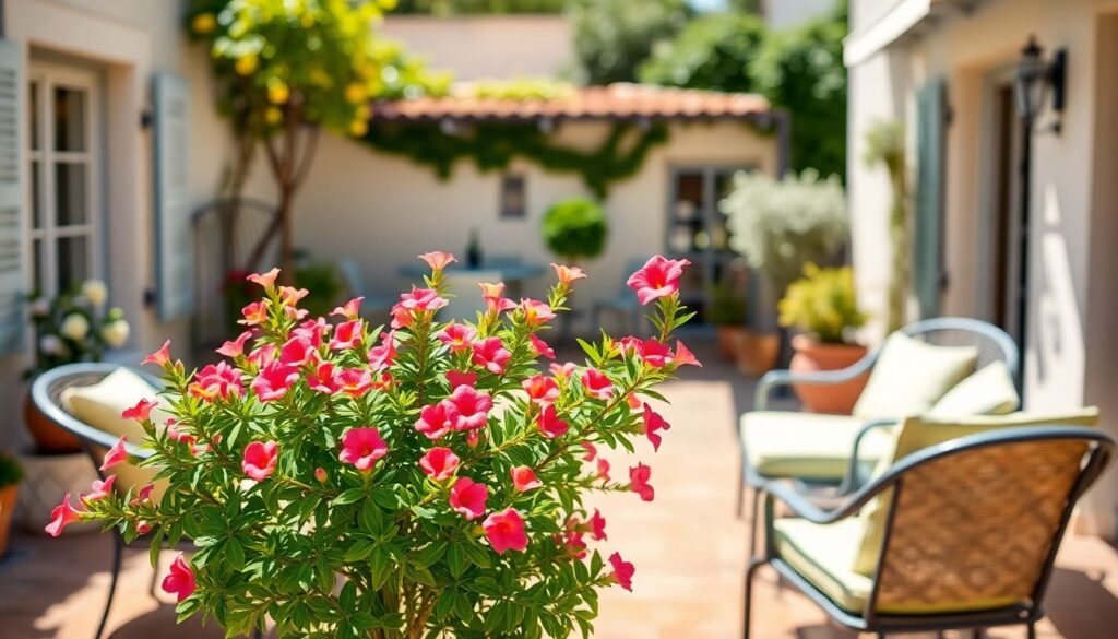 Les obtenteurs ont créé des espèces spécifiquement adaptées à la culture en pot. Par exemple, la variété ‘Petite Pink’ atteint à peine 1,20 mètre de hauteur, ce qui la rend idéale pour les balcons citadins. ‘Villa Romaine’ se distingue par ses fleurs rouge profond sur un feuillage compact, tandis que ‘Margaritha’ charme avec ses fleurs jaunes parfumées.