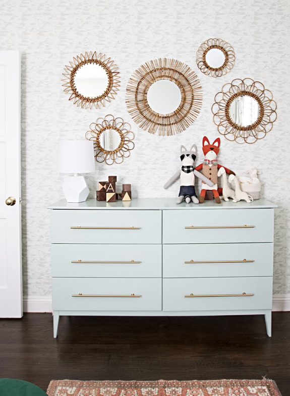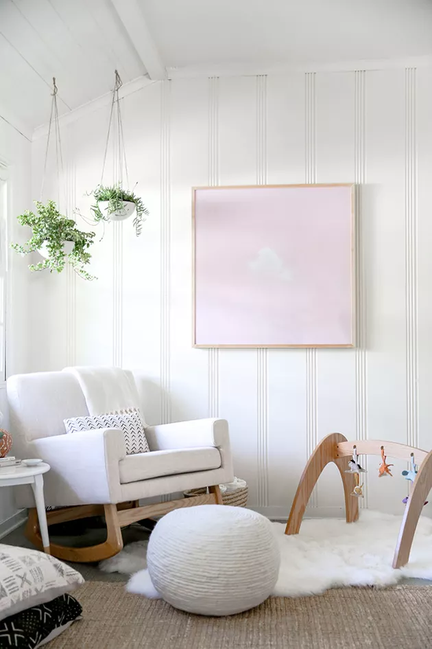 Ajoutez des plantes et des éléments de la nature à une chambre d’enfant – et ils ne doivent pas nécessairement être réels. Après tout, les nouveaux parents n’ont pas besoin de s’embêter à entretenir des plantes, et le bébé pourrait y être allergique. Cependant, cela ne vous empêche pas de créer une belle esthétique de plein air qui est apaisante et qui est superbe lorsque la lumière naturelle inonde la journée.