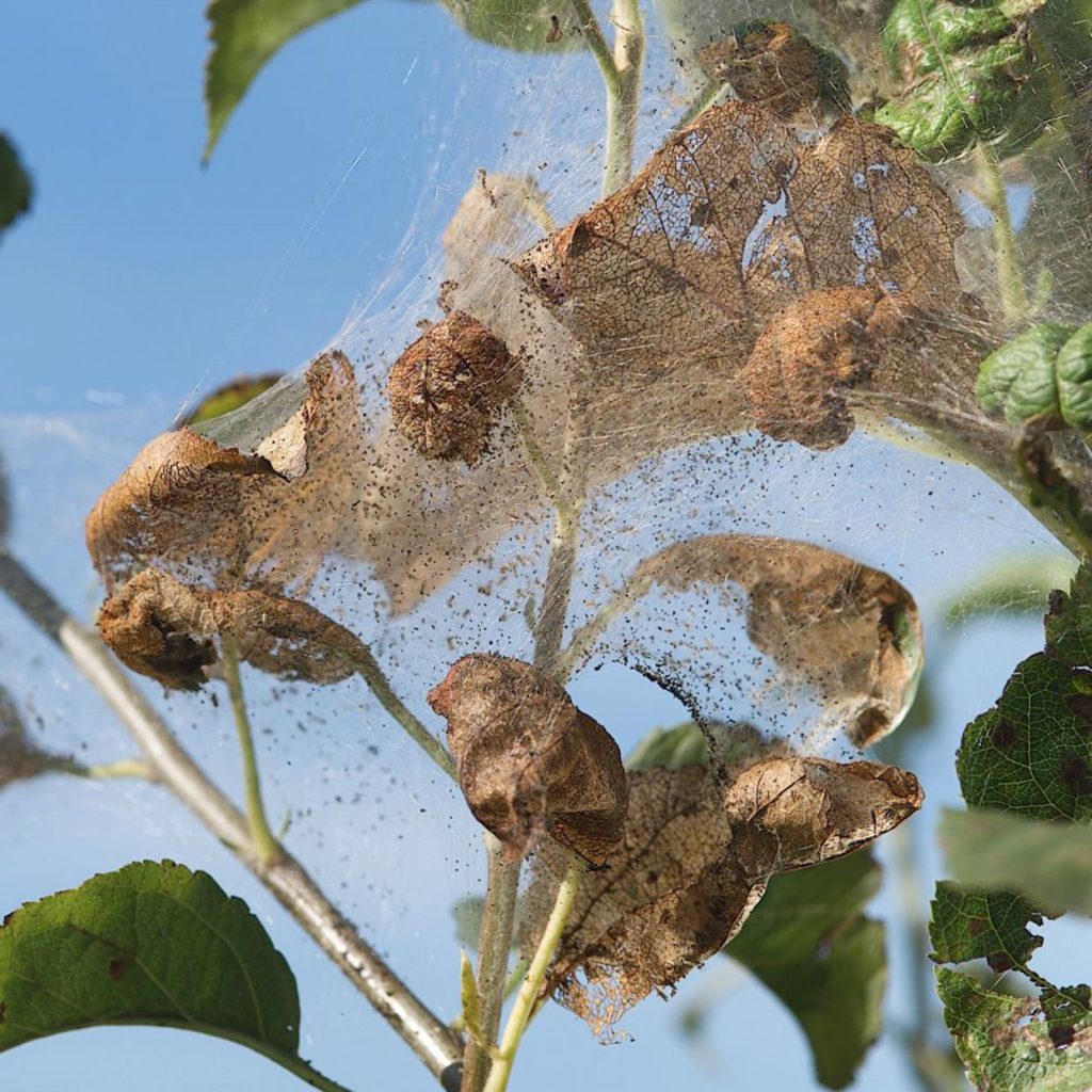 L’aulne, le saule, le peuplier, le pommier, le poirier, le pêcher, le pécan, le noyer, l’orme et l’érable sont les plus sensibles à la pyrale d’automne, mais ces parasites sont connus pour faire leur nid dans plus de 90 espèces différentes. Et ne vous laissez pas tromper par leur nom. Les pyrales d’automne commencent souvent à tisser des toiles et à manger le feuillage en juin. Ces infestations estivales sont plus petites que les grandes colonies qui se forment à la fin de l’été et à l’automne. Si vous commencez à vous occuper des pyrales d’automne en été, dès que vous les remarquez, vous éviterez une plus grande infestation en automne.