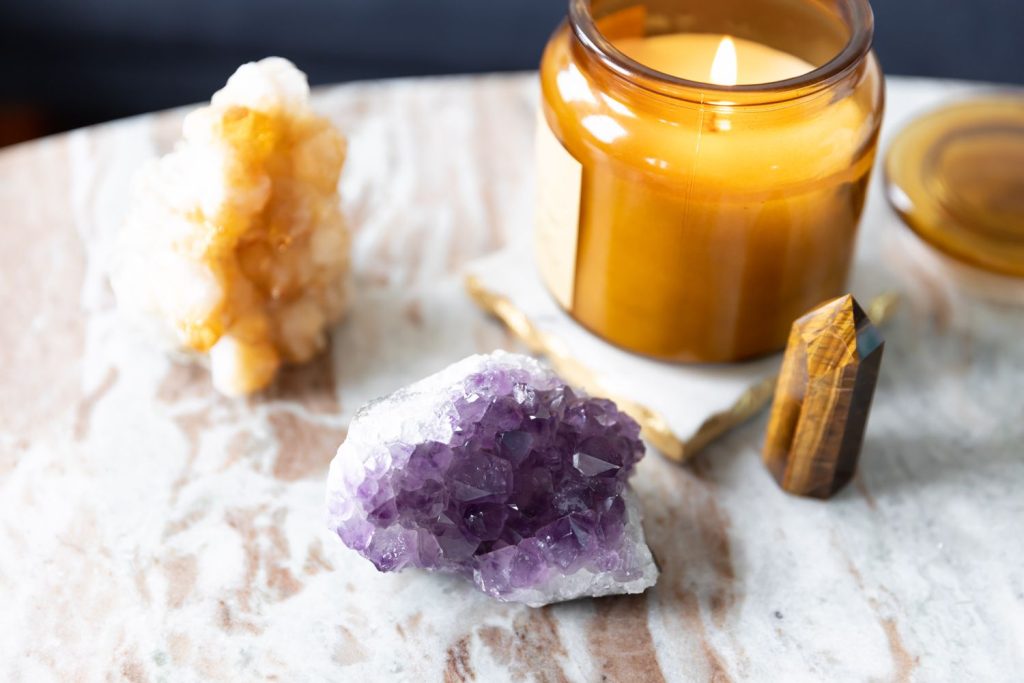 Votre porte d’entrée est également un endroit important pour accueillir de nouvelles énergies et opportunités, vous pouvez donc placer un cristal dans l’entrée de votre maison. Quelques-uns de nos cristaux préférés pour inviter plus d’abondance sont la citrine, l’améthyste et la pyrite.