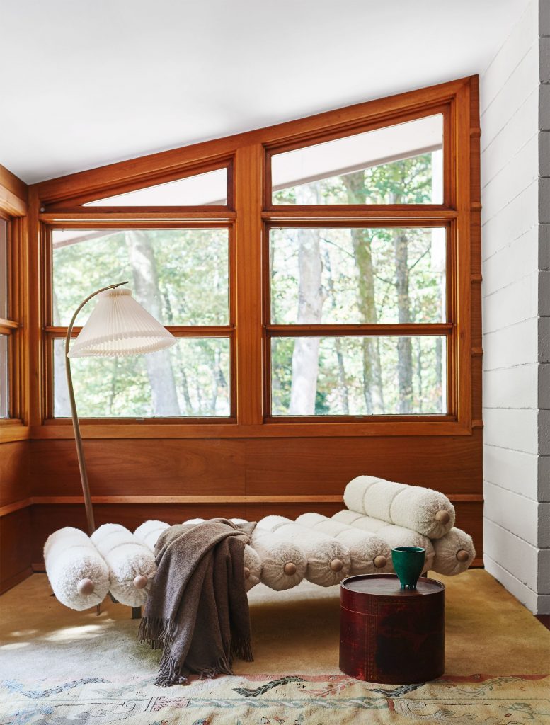 Vos idées de chambre peuvent inclure un siège de fenêtre comme lit de jour, un bon livre et le café du matin à côté de vos grandes fenêtres. Vous pouvez emprunter vos idées de porche et incorporer des guirlandes lumineuses mid-century pour ajouter de la luminosité à la pièce la nuit.