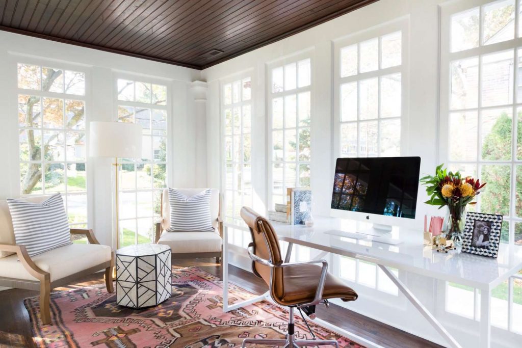 Les murs de votre nouveau bureau peuvent être décorés d’un treillis intérieur pour lui donner un effet de jardin. Pour ajouter une touche de luxe, l’ajout d’une double porte vitrée créera une sensation d’extérieur-intérieur qui vous reliera aux merveilles de la nature.