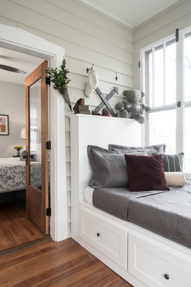 Vous pouvez inclure des paniers comme espaces de rangement qui peuvent être placés sous la table. Vous pouvez également décider d’utiliser vos oreillers surdimensionnés avec des couches de neutres doux et des détails embellis. Vous pouvez transformer l’espace en un havre de paix pour la sieste. S’appuyer sur des coussins lombaires surdimensionnés est mieux que de s’appuyer sur un mur dur, non ?