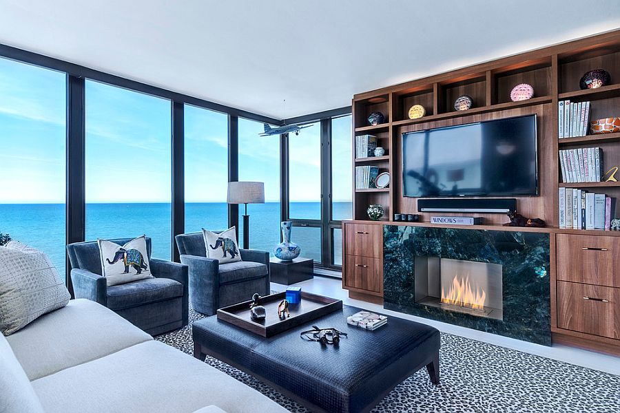 Il s’agit en fait d’une extension de votre salon grâce à votre porte-fenêtre coulissante et aux fenêtres allant du sol au plafond. Vous pouvez l’utiliser comme salle à manger et y ajouter votre table à manger polie, des peintures murales pour lui donner un aspect dramatique et quelques plantes en pot comme verdure.