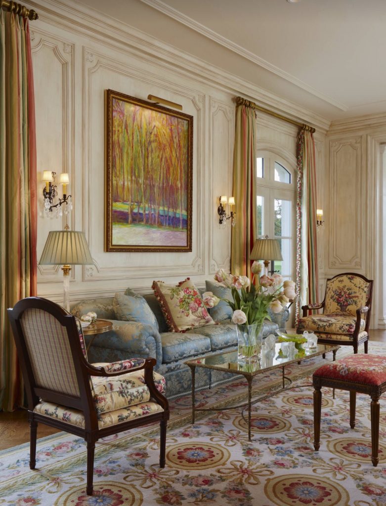 Il est également reconnu comme un style provincial et est en partie formel et chic. Ses caractéristiques dominantes sont les couleurs riches, les motifs audacieux et les accents dorés. Il est également ludique avec des touches de thèmes botaniques dans l’art, les tissus, les papiers peints et les accessoires.