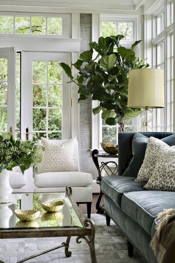 Aéré, blanchi à la chaux et ensoleillé, tel est le style des appartements de la campagne française en France. Il ne doit pas y avoir de tissus lourds et sombres ni d’armoires dans la pièce. Ce style d’idées de décoration de salon attire les invités avec un mélange suffisant de matériaux naturels à motifs, de tissus et d’armoires peintes.