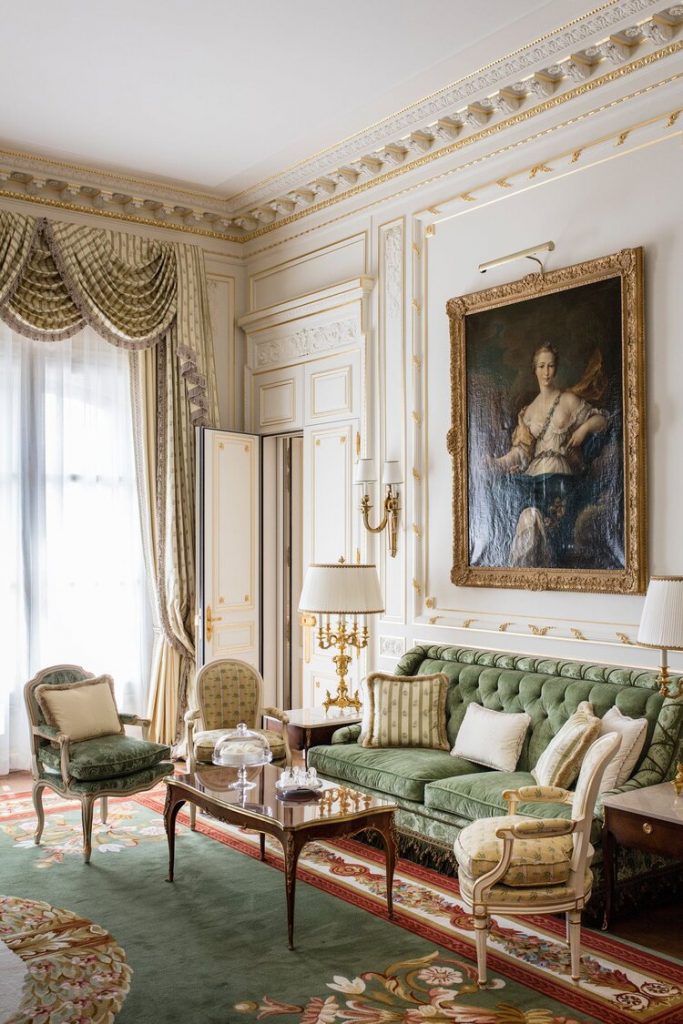 Pour une ambiance décontractée à la française, on peut accrocher des rideaux vichy qui se drapent jusqu’au sol ; ils peuvent également être accrochés dans votre cuisine ou votre salle de bains campagnarde. Les draperies légères en soie drapées au sol ajoutent de la formalité à un espace. Les salons dans un pays français sont également caractérisés par plus de lumière naturelle.