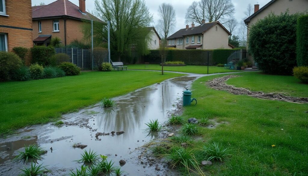 Cette problématique devient souvent plus aiguë après des travaux de construction ou de rénovation. Les véhicules lourds peuvent modifier subtilement le relief naturel du terrain, déclenchant la création de points bas là où il n’y en avait pas auparavant.