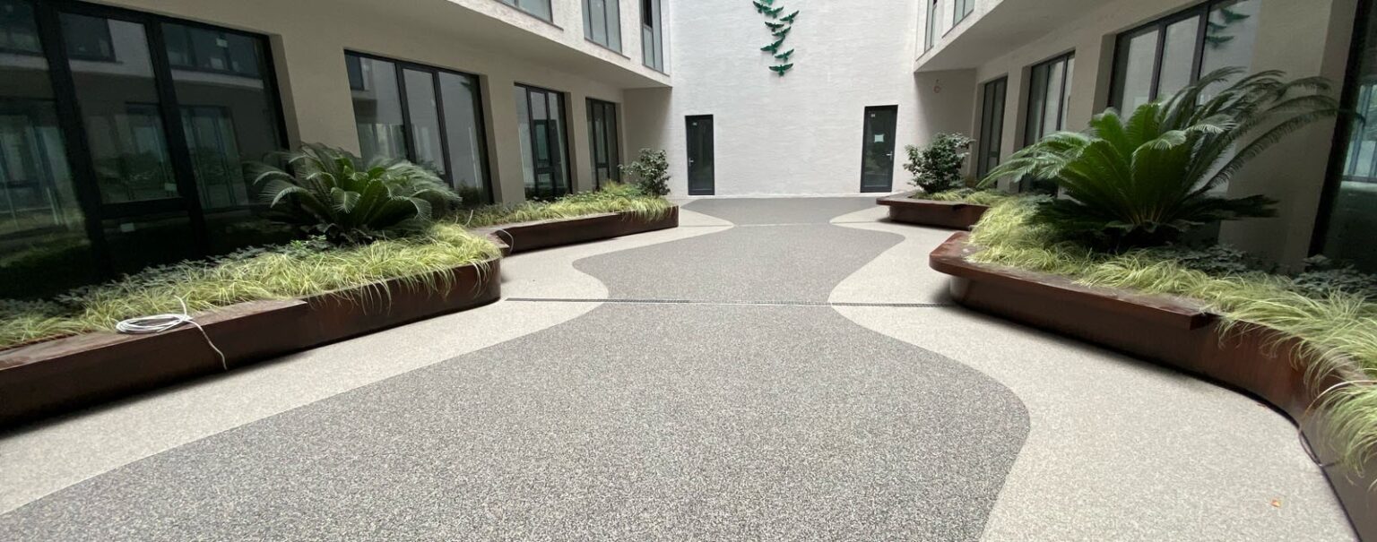 La moquette de pierre, aussi connue sous le nom de moquette minérale, est un revêtement de sol extérieur innovant. Il s’agit d’un agglomérat de petits granulats de pierre naturelle liés par une résine transparente. Elle offre un résultat harmonieux, créatif et extrêmement résistant.