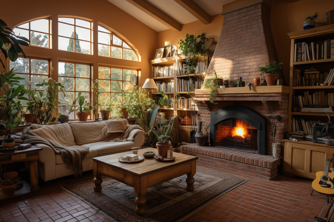 Les plantes vertes, les paniers en osier ou les poteries en terre cuite sont autant d’éléments qui s’harmonisent parfaitement avec un sol en tomette. Ils apportent une touche bohème et naturelle à la pièce.