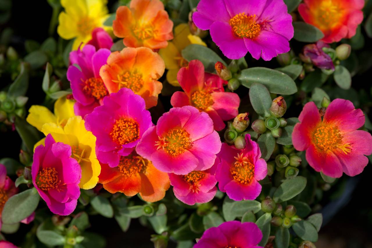 La floraison du Portulaca commence en juillet et se prolonge jusqu’aux premières gelées, offrant un festival de couleurs pendant plusieurs mois. Les fleurs, mesurant entre 3 et 5 centimètres de diamètre, s’affichent dans une vaste gamme de teintes :