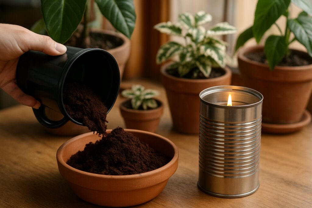 Pour ceux qui manquent d’espace, des pots de yaourt percés, remplis de marc, peuvent suffire pour protéger quelques plantes en pot. Cette version miniaturisée de la méthode conserve son efficacité pour des applications ponctuelles.