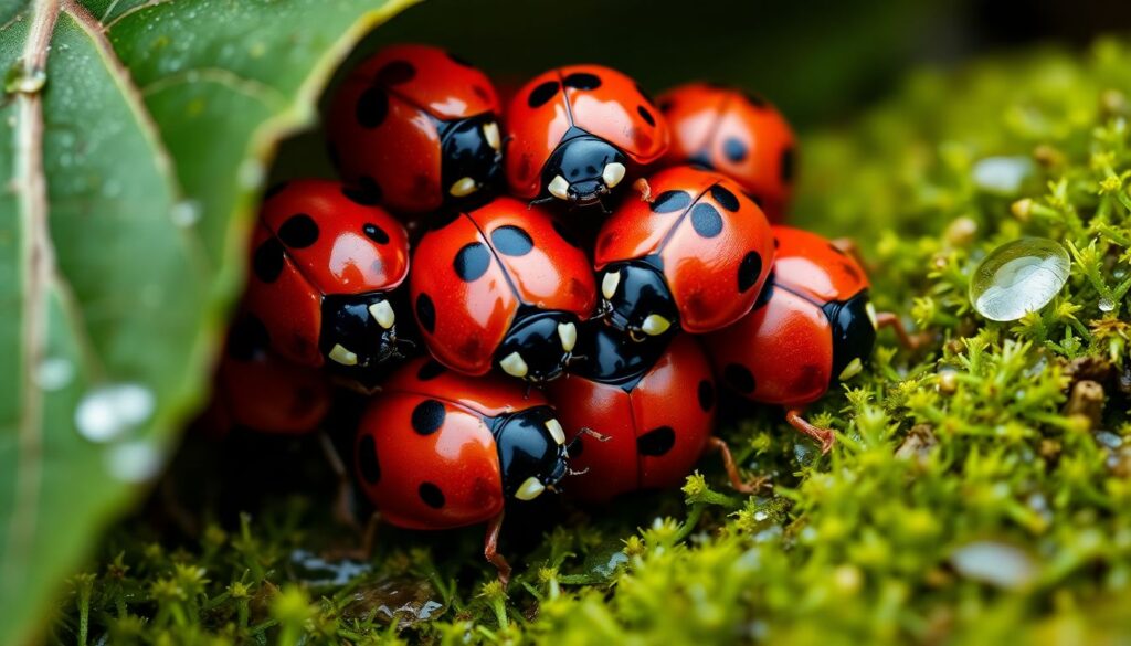 - Thermorégulation partagée : les coccinelles au centre du groupe bénéficient de la chaleur de leurs camarades.