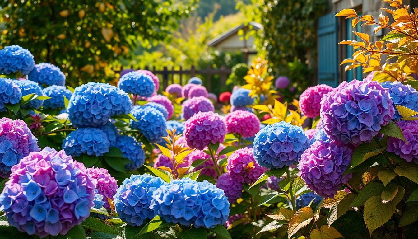 Les Hydrangea paniculata méritent également une attention particulière. Leurs panicules coniques passent d’un blanc crème à des teintes roses, puis virent au rouge brique à l’automne. Par exemple, la variété ‘Pinky Winky’ illustre parfaitement cette évolution chromatique, alors que ‘Limelight’ évolue du vert citron au rose saumoné.