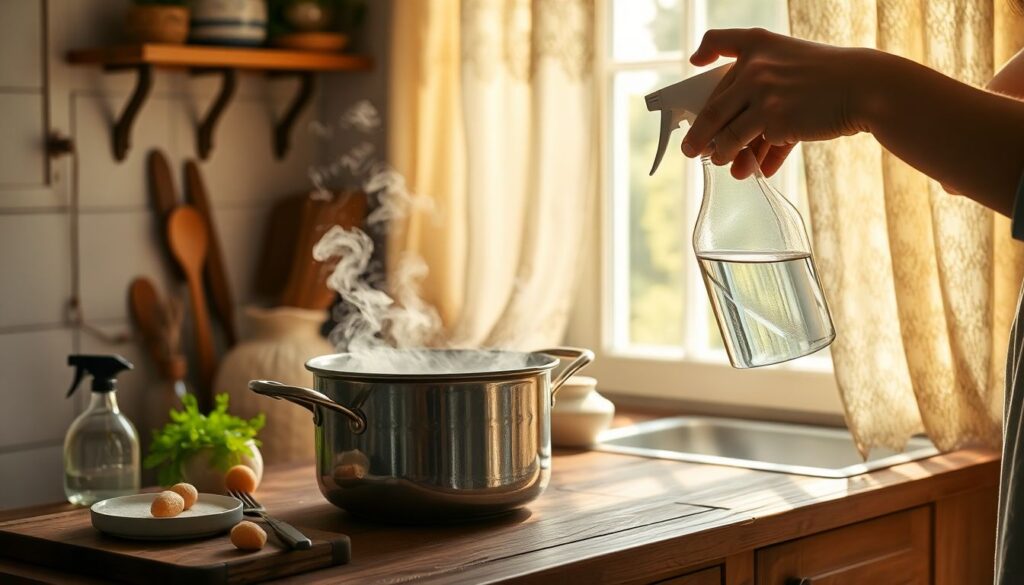 Pour redonner de l’éclat à un évier en inox, il suffit d’appliquer cette eau tiède avec une éponge. Un simple rinçage à l’eau claire suffit à effacer les traces de calcaire, laissant la surface plus brillante que les produits chimiques habituels. De plus, les plaques de cuisson, qu’elles soient vitrocéramiques ou en fonte, bénéficient également d’un nettoyage en profondeur grâce à cette solution, qui dissout même les graisses les plus tenaces sans les rayer.