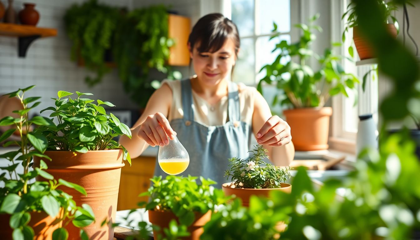 Arrosage au pied : Cette méthode convient parfaitement aux plantes en pot et aux légumes. Versez la solution diluée directement dans le sol, sans mouiller le feuillage.