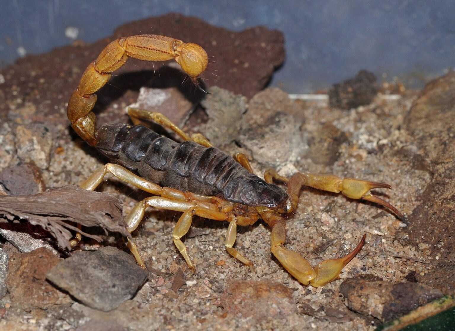 Le scorpion à queue épaisse, également connu sous son nom scientifique « Androctonus Australis », est une espèce de scorpion venimeux que l’on trouve principalement dans les régions arides d’Afrique du Nord. Il est caractérisé par son corps robuste et sa queue épaisse munie d’un aiguillon venimeux redoutable.