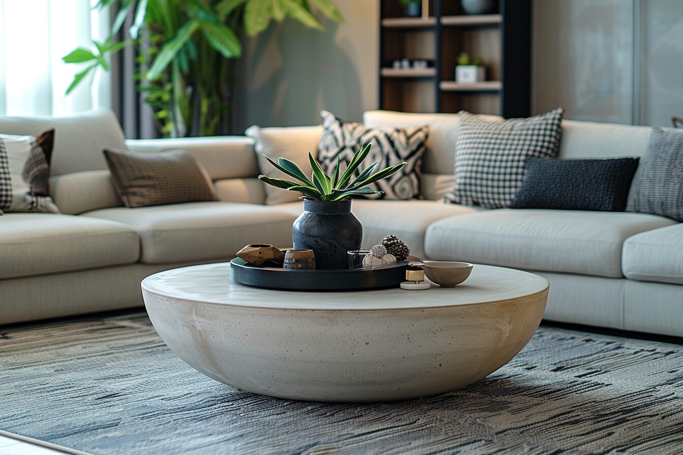 Les accessoires ne doivent pas uniquement servir d’éléments décoratifs mais aussi répondre à des besoins fonctionnels. Un plateau élégant peut servir à regrouper les télécommandes ou à accueillir une plante. Pensez également à l’utilisation quotidienne de la table basse pour choisir des accessoires qui ne gênent pas son usage pratique. Par exemple, évitez les grandes sculptures ou objets trop volumineux qui pourraient entraver l’espace de circulation autour de la table.