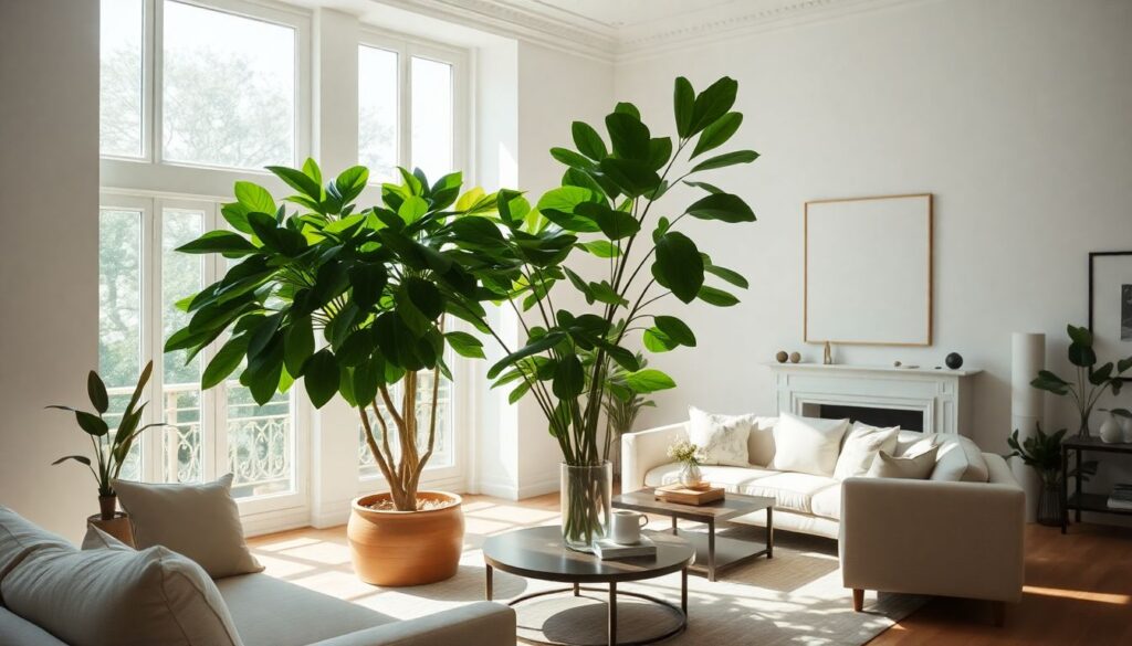 Le vert riche des feuilles de ficus elastica s’harmonise parfaitement avec divers styles décoratifs :