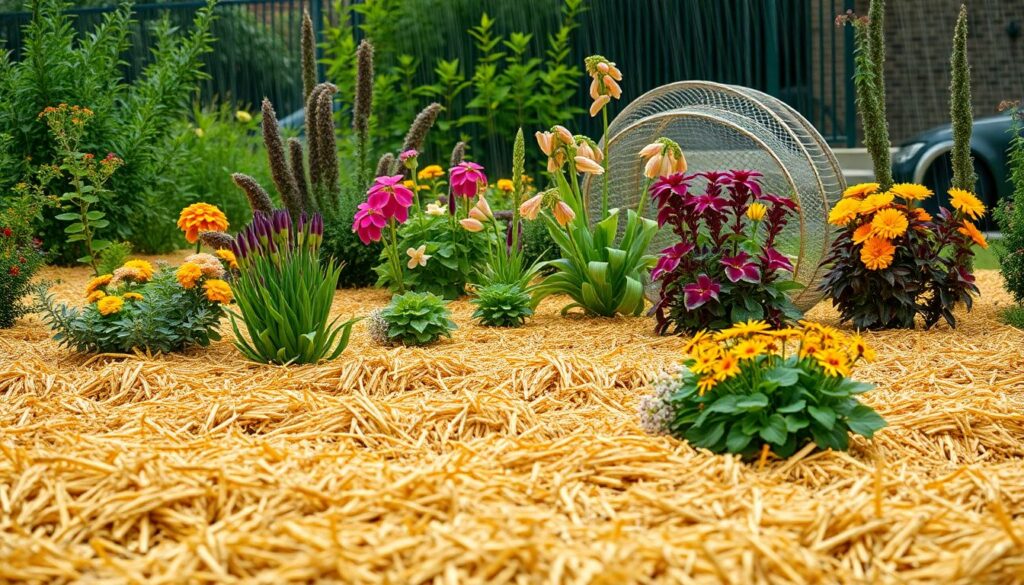 Le paillis de lin joue également un rôle répulsif naturel vis-à-vis de nombreux insectes nuisibles. Sa texture fibreuse et son parfum caractéristique perturbent le cycle de reproduction de plusieurs ravageurs tout en maintenant la faune auxiliaire bénéfique.