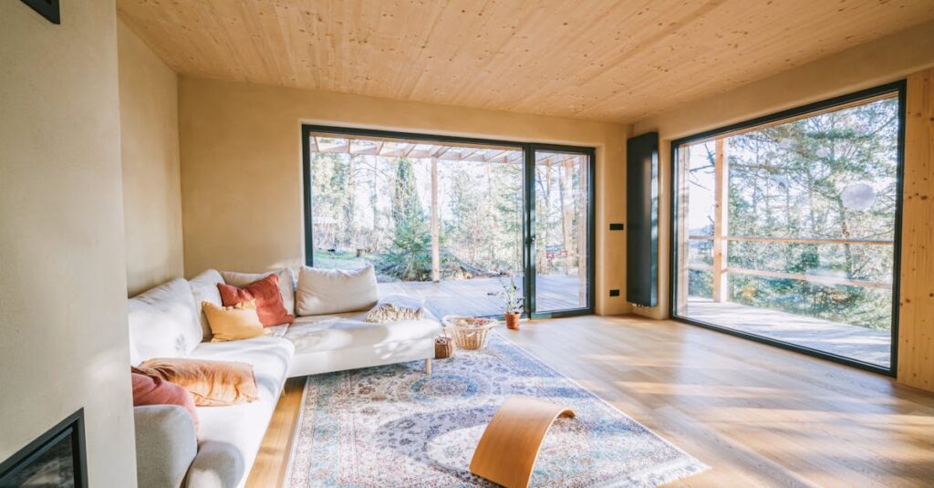 Au cœur de cette décoration, le design scandinave mise sur des matériaux naturels, des couleurs douces et une luminosité optimale. Les grandes fenêtres laissent entrer la lumière, créant ainsi une atmosphère aérée et chaleureuse. Le parquet en bois clair apporte une touche d’élégance et de chaleur, en harmonie avec les murs peints en blanc qui reflètent la lumière.