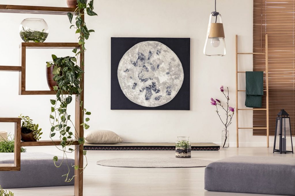 L’un des principaux éléments d’une maison wabi-sabi est l’asymétrie, l’intimité et la simplicité du design. Incorporez le minimalisme en utilisant des objets réels et naturels – il peut s’agir de plantes d’intérieur et de meubles fabriqués à partir de matériaux naturels et bruts.